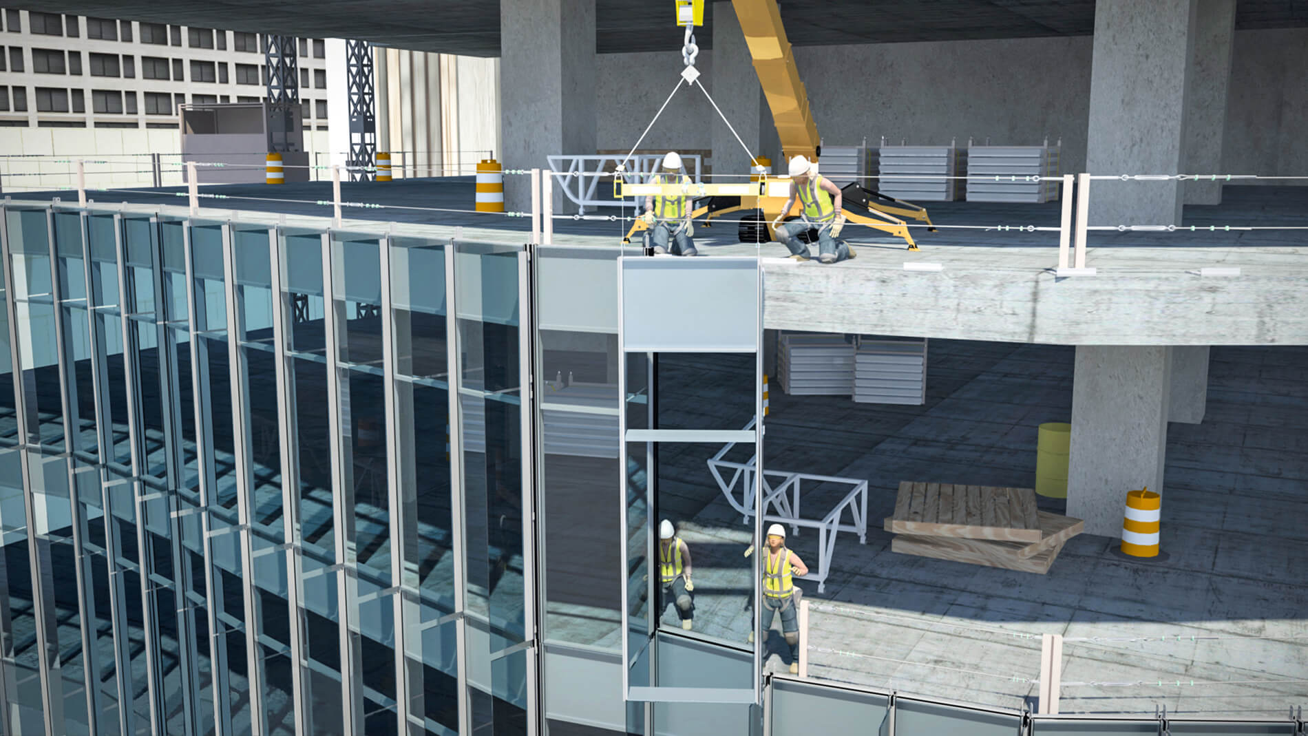 “Steden worden steeds groter en voller”, legt Joep Römgens (Schüco) uit. “Daarom bouwen we meer in de hoogte, maar dat levert vaak wat uitdagingen op. Meestal is er geen ruimte om een uitgebreide bouwplaats te maken en als die er wel is, is er vaak geen tijd voor. Daarom werken aannemers niet alleen meer voor commerciële gebouwen, maar ook voor de reguliere woningbouw steeds vaker met prefab elementgevelsystemen. Die maken het mogelijk om in snel een complete gevel op te zetten, zonder dat daarvoor profielen, rubbers, glasplaten, panelen en nog veel meer losse onderdelen op de bouwplaats nodig zijn.”